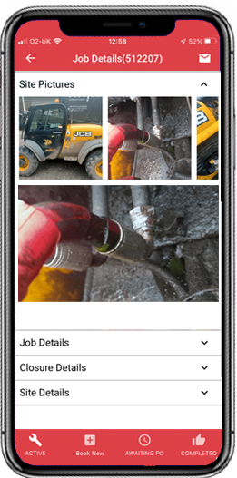 Job site photos will showcase a selection of images displaying the machine, manufacturer’s serial plate, defective part, oil level, and hose level if available.